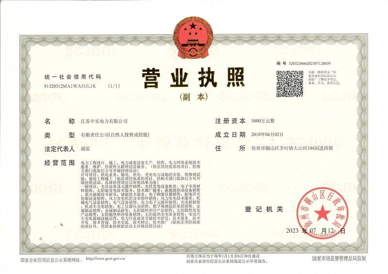 江蘇中實電力有限公司營業(yè)執(zhí)照